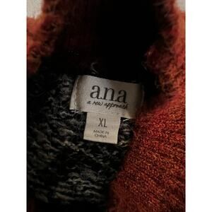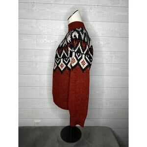A.N.A. Nordic Fair Isle knit mock turtleneck pullover sweater. Red sweater with red, black & white Nordic/ Fair Isle pattern across sleeves & chest. Mock turtleneck with long sleeves. Very soft polyester/acrylic/spandex blend. Excellent preloved condition. Approximate measurements pit to pit 21", shoulder to hem 25", size XL.