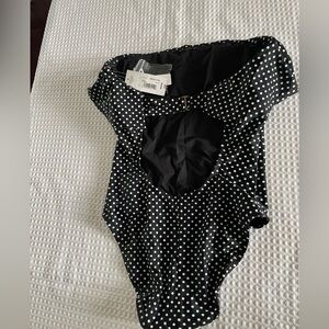 A.N.A. One piece Swimsuit Polka Dot Black & White M Off Shoulder or Halter NWT