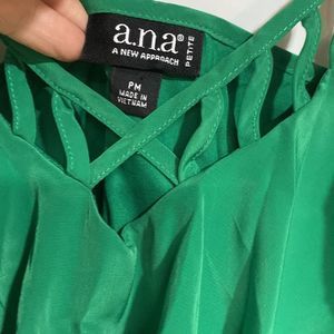 ANA Petite Medium Emerald Green Beautiful Strappy Satin Look Alike Dress
