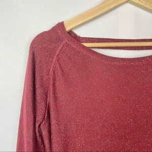 A.N.A Red Shimmer Scoop Back Knit Long Sleeve Sweater S