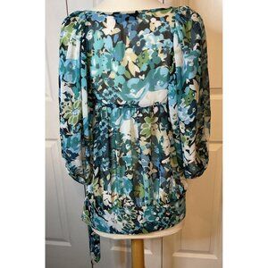 A.N.A. Sheer Floral Blue Green White Blouse Top Size Medium
