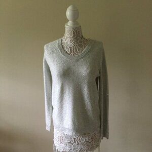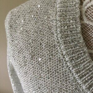 Sweater by a.n.a. Silver thread and sequin. Bow detail on back. Size medium.