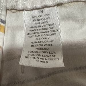 Excellent condition. 98% cotton, 2% spandex. Lightweight stretch twill. Machine wash cold. MSRP $37