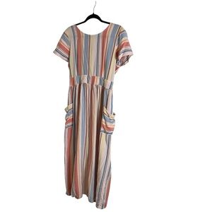 ANA Striped Open Back Dress Women's M Retro Pockets Linen Blend