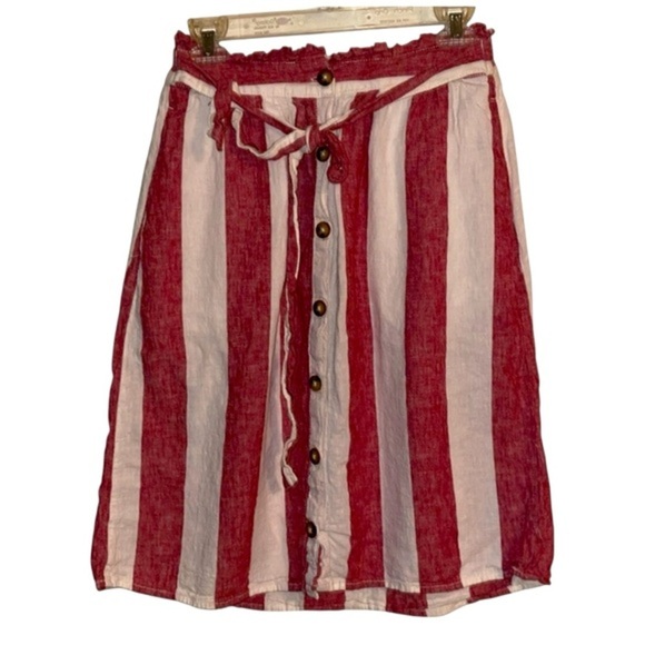 🌹A.N.A. Striped red & White Tie Belt Midi SKIRT