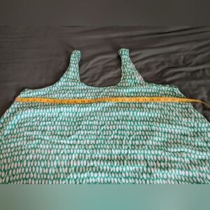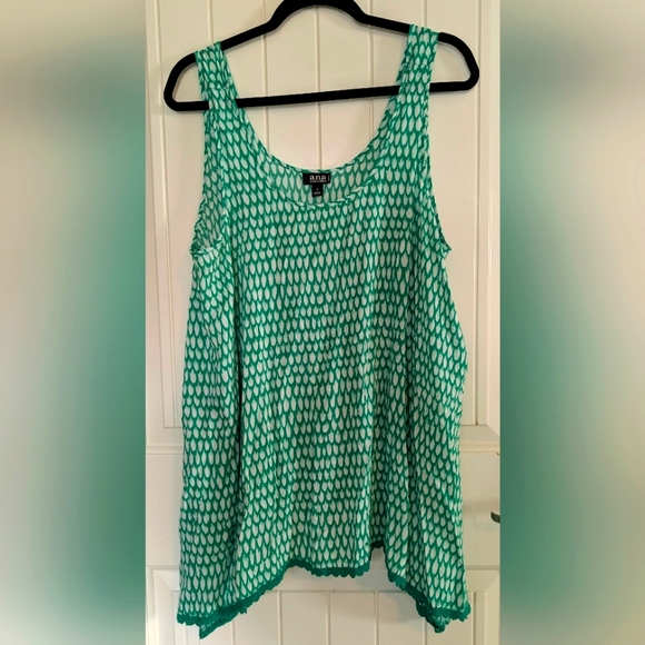 A.N.A (A New Approach) shark bite style tank top size 1X. This has a very loose fit, so could fit up to a 3X easily. Perfect for Spring and Summer!