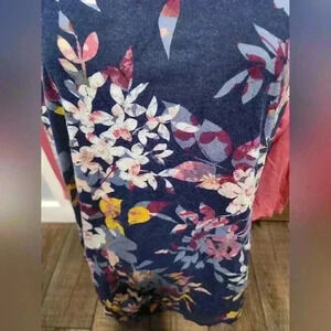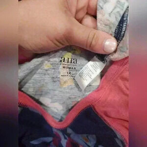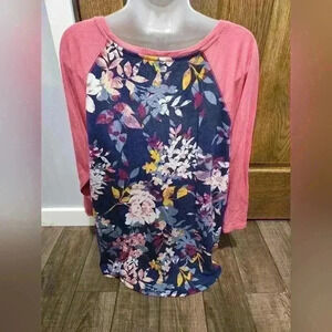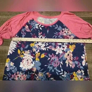 A.N.A. Top Women's 1X Blue Pink Floral Round 3/4 Raglan Sleeve Pullover