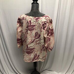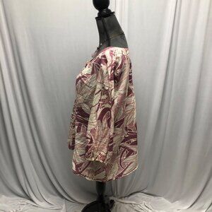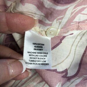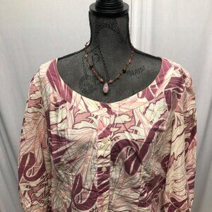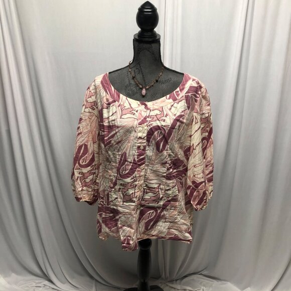 ANA Top Womens Size 1X Button Front Pink Cream Lightweight Cotton Balloon Sleeve