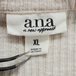 A.N.A Top Womens XL Cream Ribbed Collared V-Neck Long Sleeve Stretch Knit Preppy Pullover
