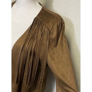 A.N.A. Western Faux Suede Fringe Drape Front Jacket Blazer Brown Size Medium