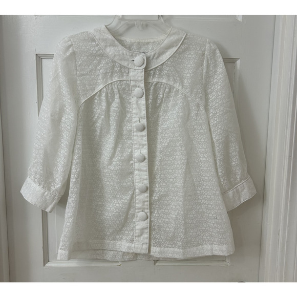 A.N.A White Sheer Beachy Button Up Resort Festival Cruise Sz M 3/4 Sleeve