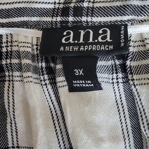 A.N.A. White and Blue Plaid Blouse with Split Neck. Size 3X.