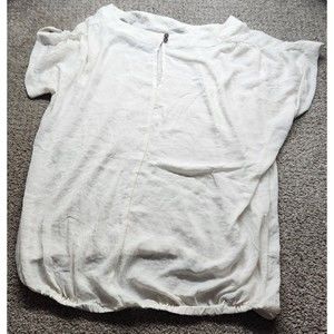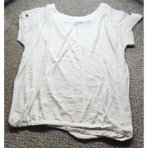 ANA Women Top Shirt Blouse X Large White Button Front Hi Low Hem.