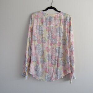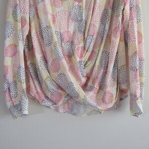 ANA women's blouse - abstract print, surplice front, lightweight, long sleeve and drapey. Multicolor.