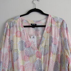 ANA Women's Abstract Print Surplice Top XL Tall Multicolor Boho Maximalist