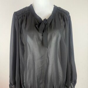 A.N.A Women’s Black Sheer Blouse XL Tie Neck Long Sleeve Lightweight Size XL