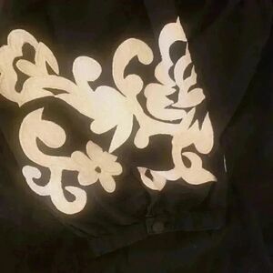 ANA Women's Black Cotton Tunic/Peasant White Accents Bell Sleeve Top EUC sz M