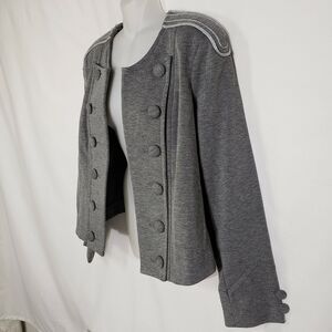 ANA Womens Blazer Jacket Large Gray Military Style Open Front Shoulder Epaulets
