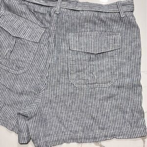 A.N.A. | Women’s Blue Striped Linen Casual Belted Summer Shorts Size L