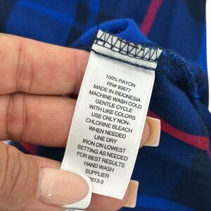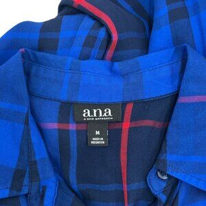 A.N.A Womens Button-Up Plaid Shirt Size M Blue & Red 100% Rayon