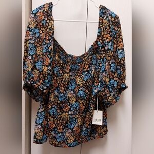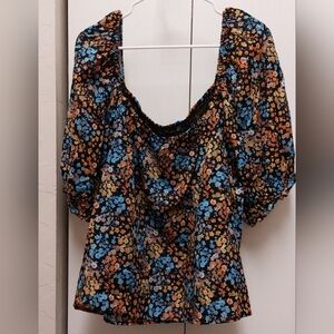 ANA Women's Floral Scoop Neck Peasant Top NWT Pouf Sleeves Boho 100% Cotton