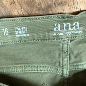 A.N.A Womens Jeans Green High Rise Slim Straight Leg Fitted Hip Thigh Stretch 16