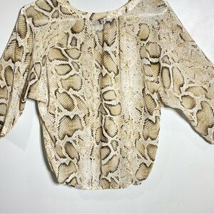 A.N.A Women’s L Snakeskin Print Blouse Pullover Pintuck Detail V-Neck 3/4 Sleeve