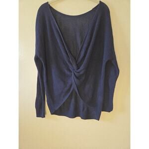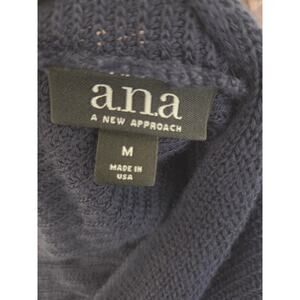 In wonderful clean condition. This ANA women's sweater in blue is a stylish and versatile addition to any wardrobe. The wrap front design with a V-neckline and pull over closure makes it easy to throw on for casual occasions. The lightweight knit fabric and stretchy material ensure comfort and mobility, while the open hem adds a modern touch. Perfect for all seasons, this sweater can be machine washed and is proudly made in the USA.