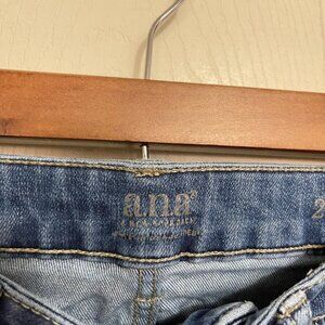A.N.A. Women's Medium Wash Mid Rise Whiskered Jegging Skinny Jeans Size 2/26. NOTE: some puckering, see photos. Measurements Waist: 28" Inseam: 28" Rise: 8.5" Offers always welcome! Measurements are approximations taken while hanging
