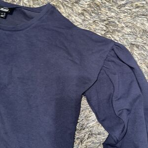 A.N.A. Women’s Navy Puff Sleeve Cotton Top Jean A New Approach Co Size Large