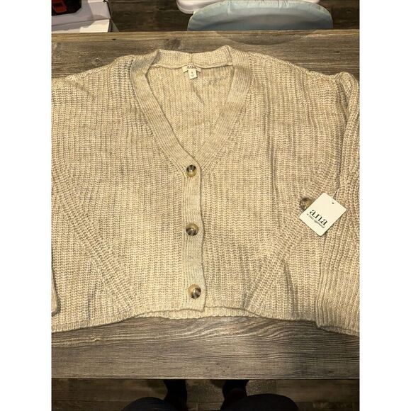 A.N.A. Womens PS Beige Oatmeal Marled Cable Knit V-Neck Sweater. Size XL. NWT. 9