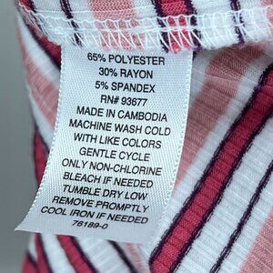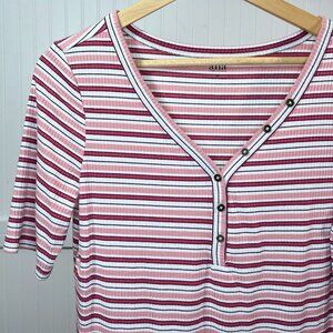 A.N.A. Women's Pink Red Striped Ribbed V-Neck Henley Blouse Top Size Medium