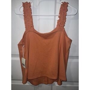 A.N.A. Women's Size PM Button Front Wide Ruffle Strap Orange Tank Top Blouse.