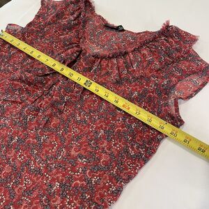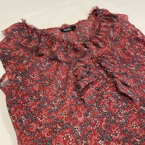 ANA Womens Sleeveless Semi-Sheer Pleated Ruffle Tank Top Blouse Sz PL
