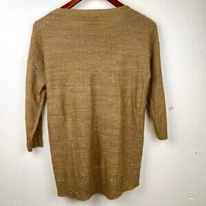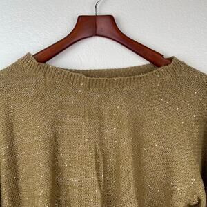 A.N.A. Womens Sweater Sz L Sequin Fairy Grunge Whimsigoth Boho Gold Metallic Asymmetrical Glitter.