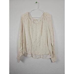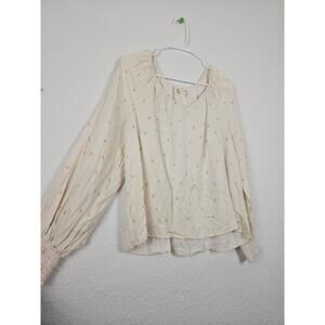 A.N.A Sweetheart V-Neck Long Sleeve White Peasant Style Blouse Small