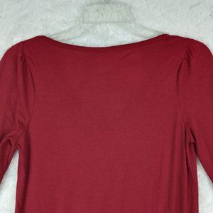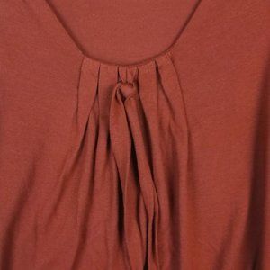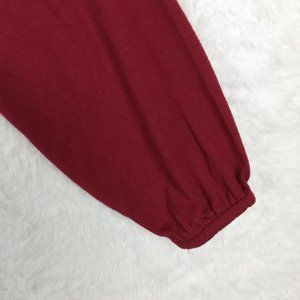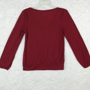 A.N.A Womens Top Long Sleeve Solid Deep Red Rouched Tie Neck Elastic Cuff S