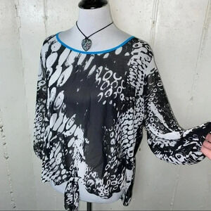 ANA XL white/black/blue trim‎ front tie sheer tunic