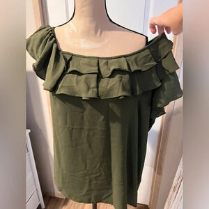 A.N.A a new approach dark green sz XL one shoulder top with ruffle hem.