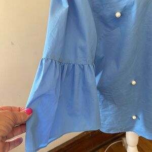 A.N.A blue blouse with faux pearl detail and statement sleeves Size XL