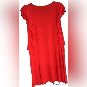 Super soft, comfy, lightweight, sleeveless dress with ruffled accents. Orange/Red color, perfect for warmer temps. A.N.A. ( A New Approach) brand size medium. This was worn 1-2 times, washed carefully and line dried.