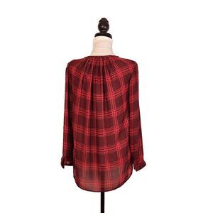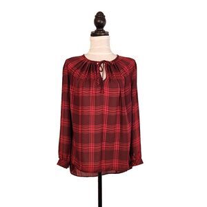 A.N.A. A New Approach Size PS Blouse Red Plaid Petite Women's Top Sheer