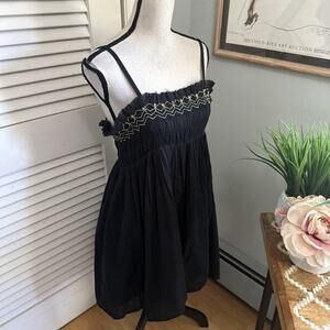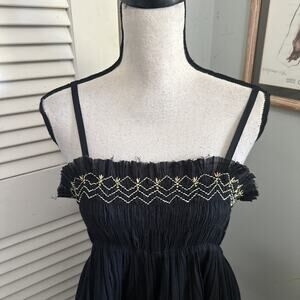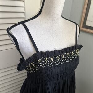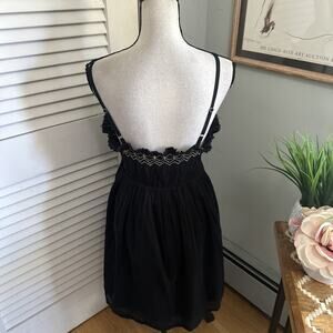 ANAAK Revolve Dress Womens 3 US Large Black Rosa Smocked Mini Raw Cut Trim Boho