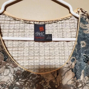 ANAC Designed By Kimi Mesh Mixed Print 3/4 Sleeve Top Made in Korea Size Large. Excellent pre owned condition with no flaws, not sure it was ever worn.