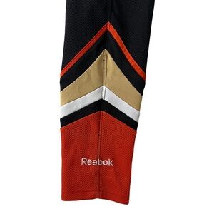 Black, orange and gold women’s authentic Anaheim Ducks jersey in a size small. This jersey features the iconic Anaheim Duck’s logo in the front center and has a smaller logo on the shoulder. The jersey does not have a name on the back, making it timeless. This jersey is in excellent preloved condition with no flaws. It was only worn for a couple hours.