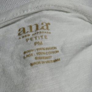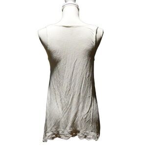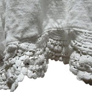 ANA high low white tunic tank with crochet lace hem in a petite medium. Body and lace are 100% Cotton