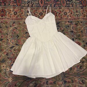 Analeigh is effortlessly dressed up or down, crafted in a lightweight cotton blend with boned corset and sweetheart neckline. With a lace up back for a super cinched waist, the skirt is full and the straps are adjustable for your perfect fit.