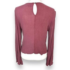 ANAMA Long Sleeve Keyhole Tie Front Gauze Top