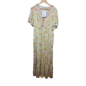 ANANY Floral Tassel Boho Maxi Dress NWT Sz. L