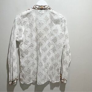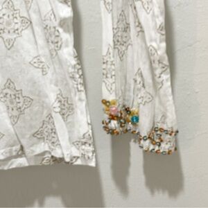 ANANYA Women’s White Multi Heavily Beaded Cotton Tunic Top Blouse Size Large